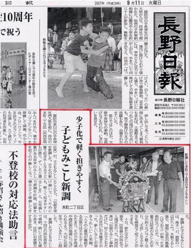 こちらはお神輿納品の際に取材いただいた長野日報さんの記事です。